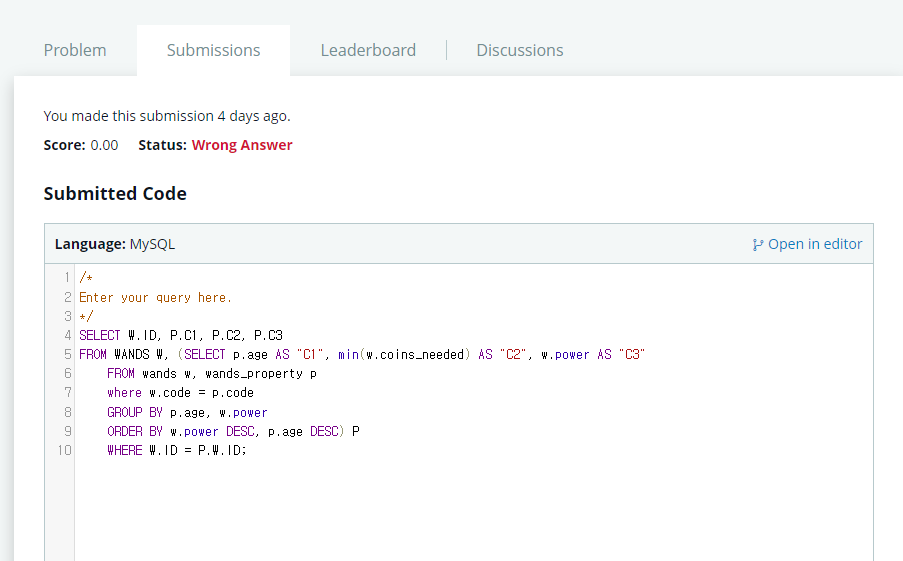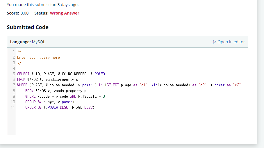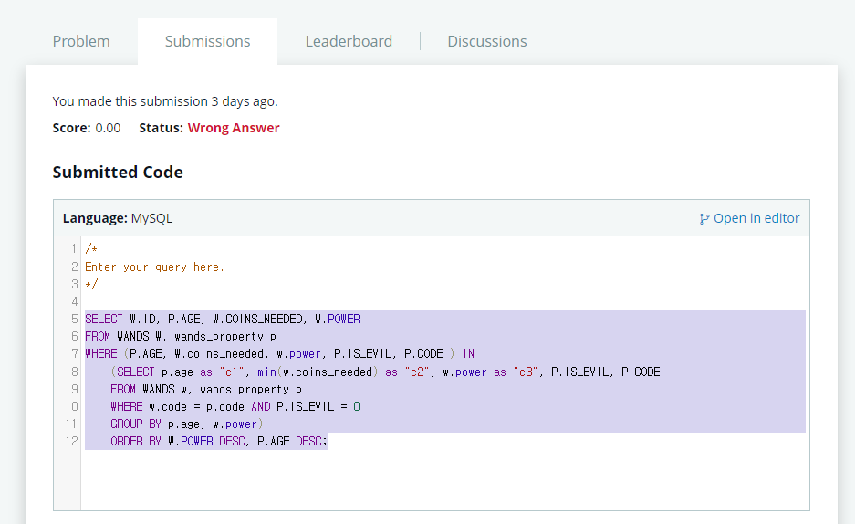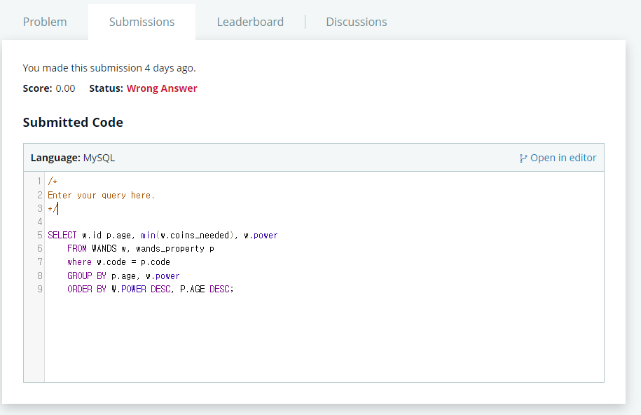 먼저 GROUP BY로 최소의 값을 찾아보았다.