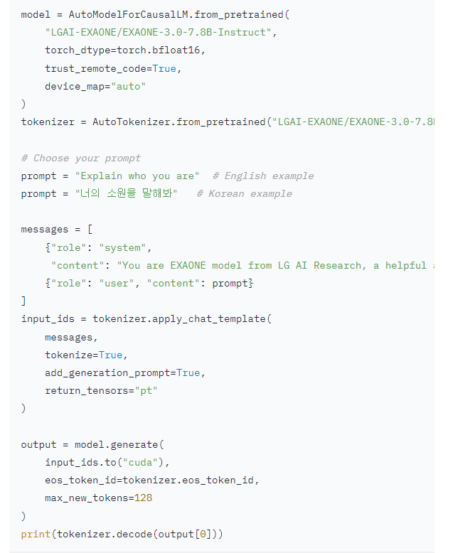 LG AI 연구원에서 만든 EXAONE이 공개되었다고해서 한번 사용해보았다.