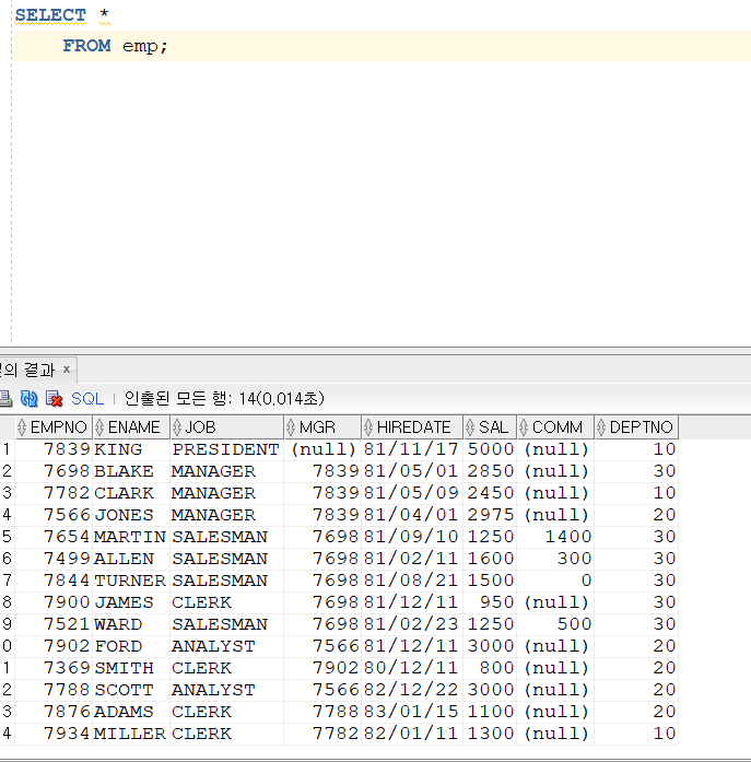 1. 모든 데이터를 부를때는 *를 사용하면된다.