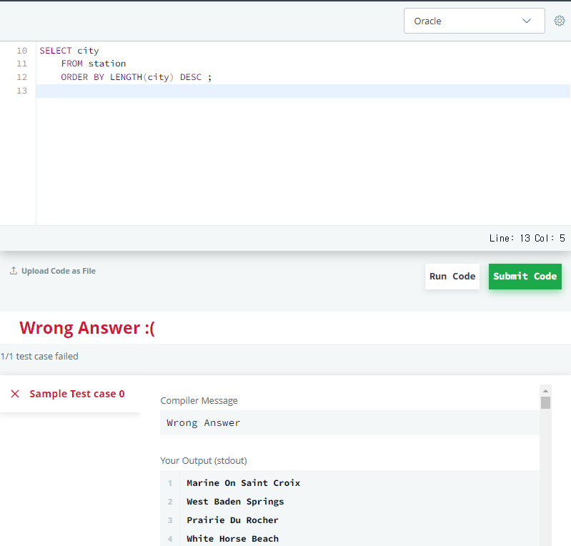 아래처럼 이름이 긴 순서부터 나와서 가장 높은거 하나를 뽑으면 될 줄 알았다..
