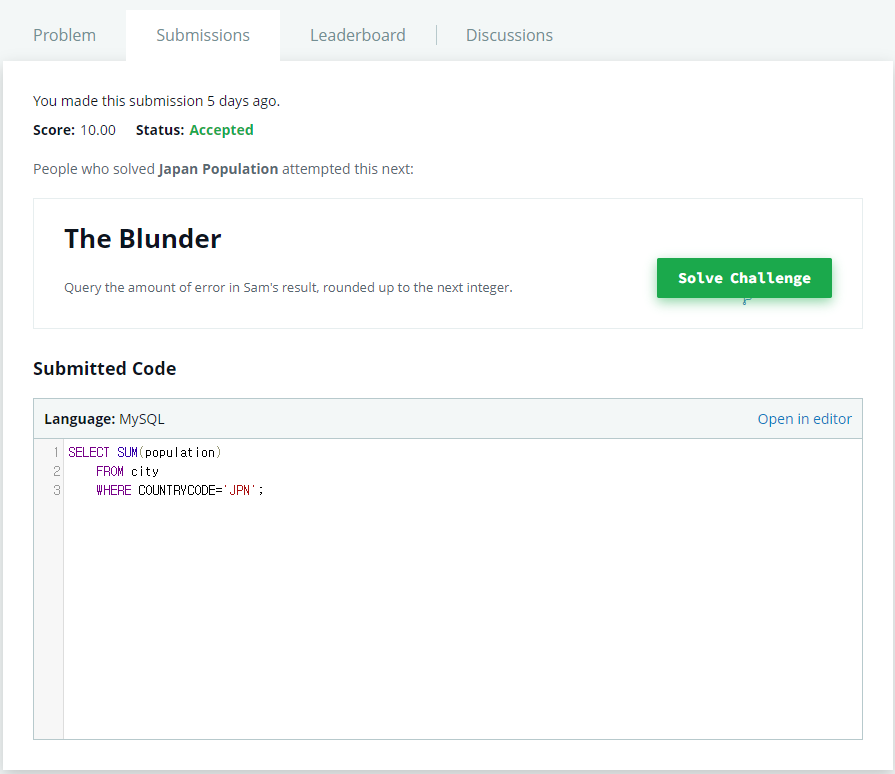 | 26. Weather Observation Station 2 (0) | 2022.05.30 |