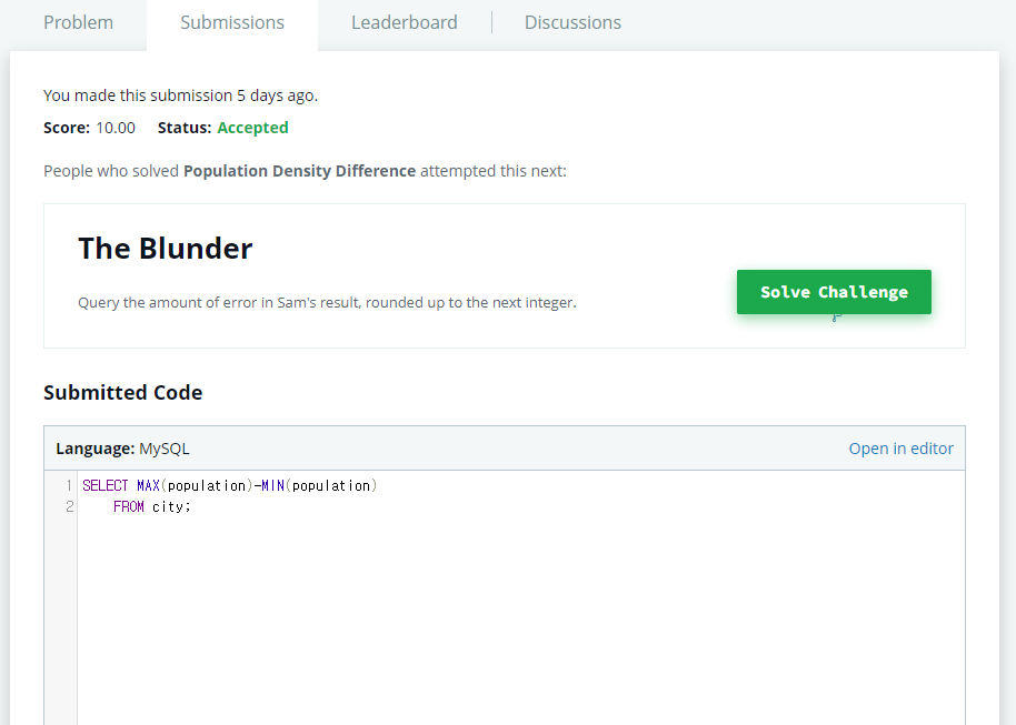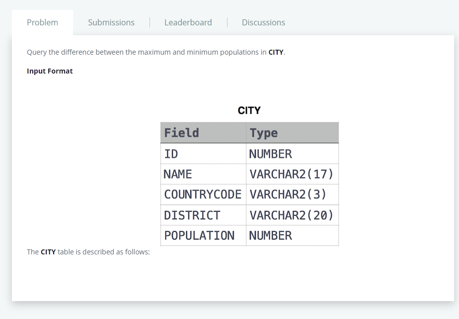 | 26. Weather Observation Station 2 (0) | 2022.05.30 |