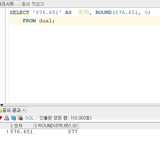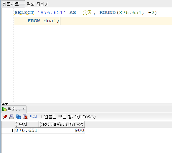 1. ROUND로 반올림할 수 있다.