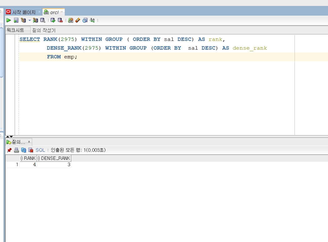 특정데이터의 순위는 RANK(특정 데이터) WITHIN GROUP ~~ 으로 작성해주면된다,
