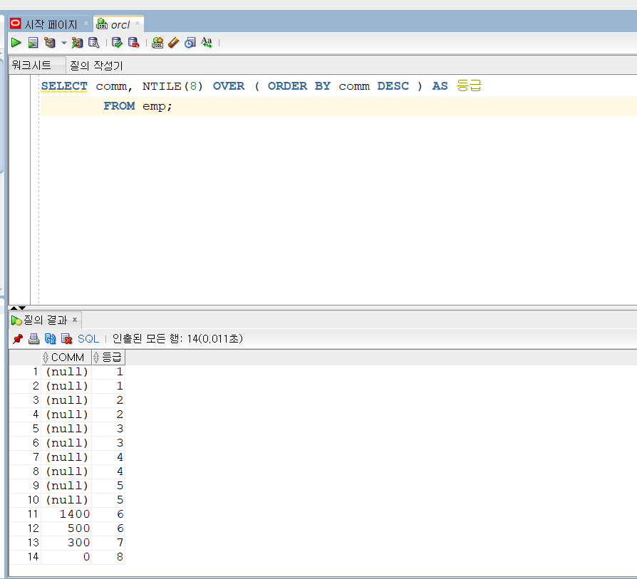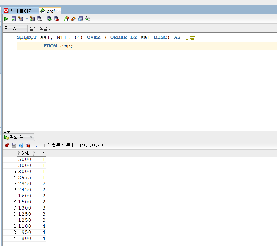 NTILE(나눌 등급 개수) OVER (원하는 변수) 로 작성해주면된다.