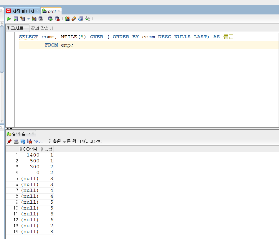 NULLS LAST 함수는 결측치를 가장 마지막에 출력하겠다는 의미이다.