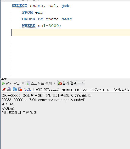 SELECT, FROM, WHERE, ORDER BY 순서로 하면 된다.