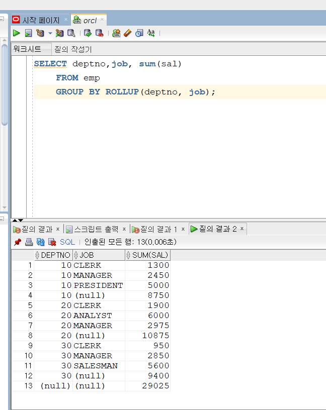 1. 집계 결과는 ROLLUP으로 출력한다.