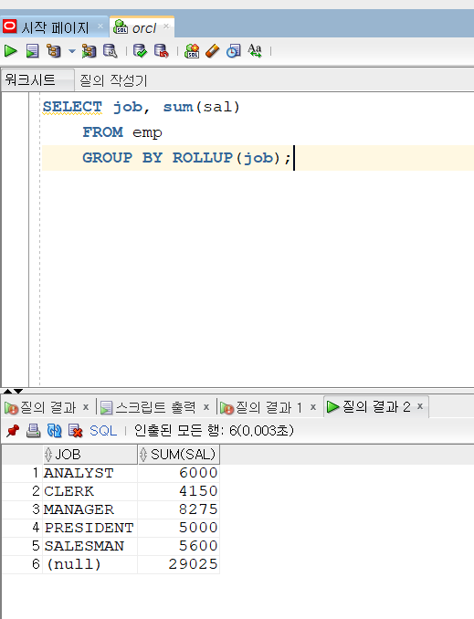 ROLLUP은 집계 결과가 나오는 함수이다.