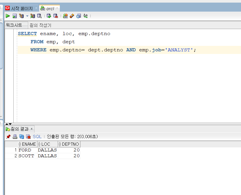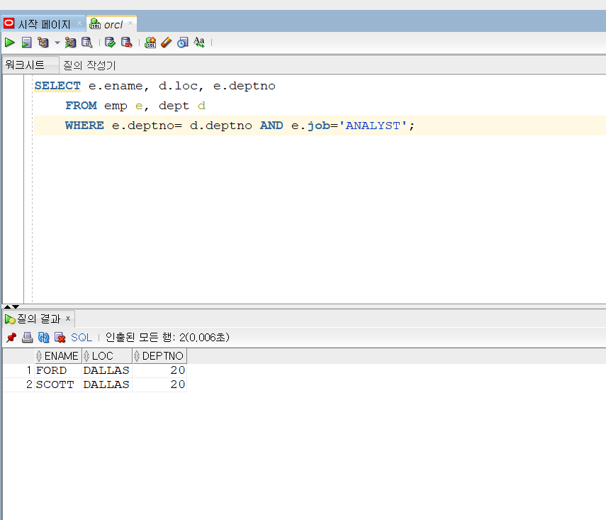 WHERE에서 서로의 공통 KEY를 알려주면 간단하게 출력된다.