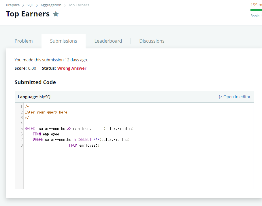 내가 제출한 답지를 보니깐 salary*months는 7개의 행이 있는데 count는 1개행이라 오류가 난것을 보인다...