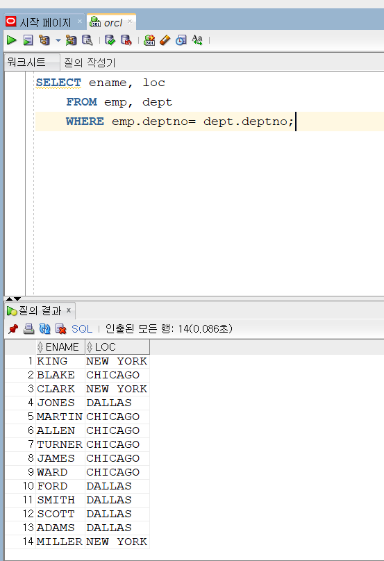 58. 여러 테이블의 데이터를 조인하기(EQUI JOIN) 요약 1. 여러 테이블을 조인하는 것 중 =을 사용하는 것을 EQUI JOIN이라고 한다. 2. 두 데이터 셋을 병합해서 할 수있지만 몇가지 주의사항을 기억하자 서로 다른 테이블에 있는 컬럼들을 한번에 출력하려면 JOIN을 사용해야한다. WHERE에서 서로의 공통 KEY를 알려주면 간단하게 출력된다. WHERE절에 조건을 더 추가할 수 있다. emp 데이터 중 job이 ANALYST인 자료를 출력한다. -------------------------------------------------------------------------------------------------------------------------- ------------------------------------------------.. 코딩/SQL 2022.06.06