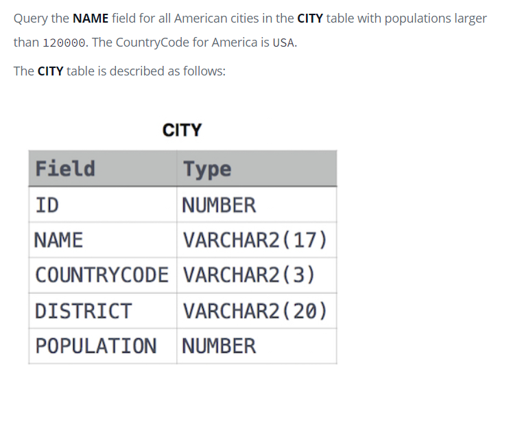 3. Revising the Select Query 2 오늘은 주말이니 코딩테스트를 좀 해보았다. 먼저 문제부터 보면 인구가 12만명 이상이며 미국에 있는 도시명을 출력하는 것이다. 나는 3번 정도 시도해서 정답을 맞췄는데 정답은 다음과 같다. 아래는 in을 써서 만든 쿼리인데 이것도 동일한 값을 보내준다. 다음은 내가 시도했던 오답들인데 틀린 이유를 분석해보려구했는데 다시 하니깐 다 잘된다.... 코딩/SQL 코딩테스트 2022.05.08